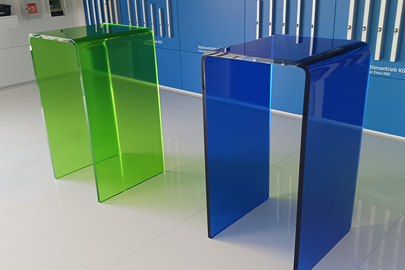 Zum Beispiel für Anfertigungen auf Messen oder Events. Ein weiterer Vorteil dabei: Die Folie lässt wieder lösen und die Acrylglas Objekte können bei Bedarf neu foliert werden.